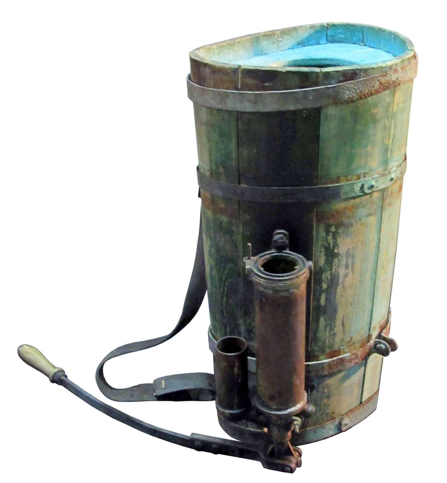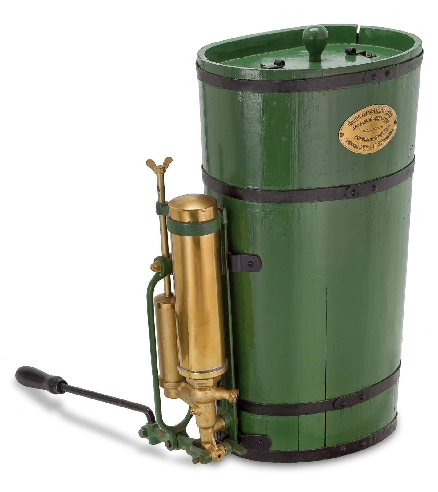 Prior to this groundbreaking invention, spraying agents had been applied – with limited effectiveness – using a bucket and brush. The world's first backpack sprayer which can be seen in the Historical Museum in Aarau, Switzerland used a wooden vat as a container. However, the internal pump soon proved to be a problem, and so the second generation with an external pump was launched soon after.