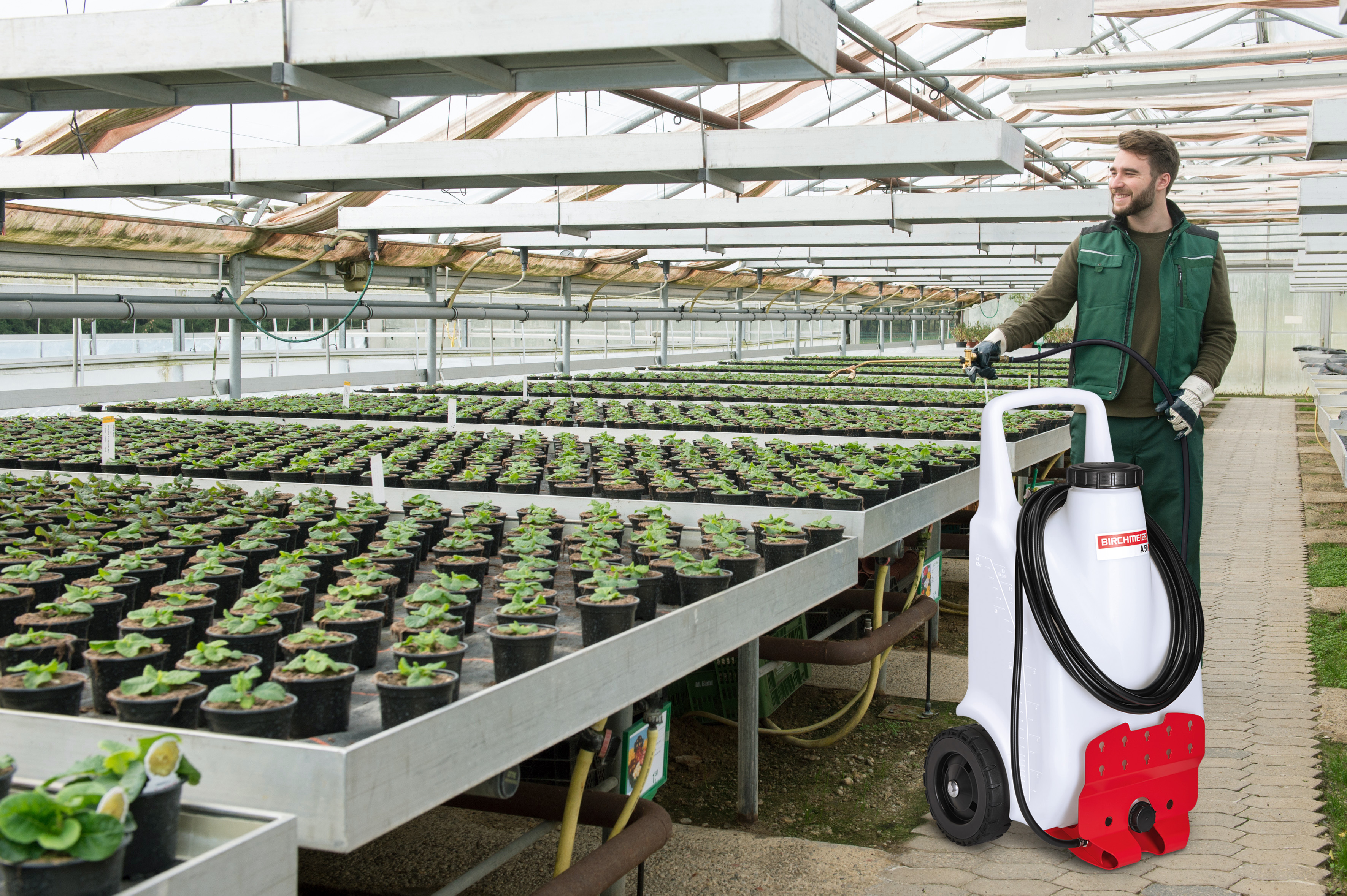 Auf der IPM 2017 präsentiert Birchmeier sein neues Zweirad-Akku-Sprühgerät A 50 und setzt damit abermals Maßstäbe bei Karrenspritzen für professionelle Anwender. Wie das erfolgreiche Rückensprühgerät REC 15 verfügt auch die A 50 über eine elektronische Regelung. Diese ermöglicht es, den Druck vorzuwählen sowie ihn konstant zu halten. Und sie überwacht wichtige Funktionen von Pumpe und Akku. Ein konstanter Druck ergibt ein konstantes Sprühbild. Das optimiert die Wirkung und ist zudem sparsamer im Verbrauch.
