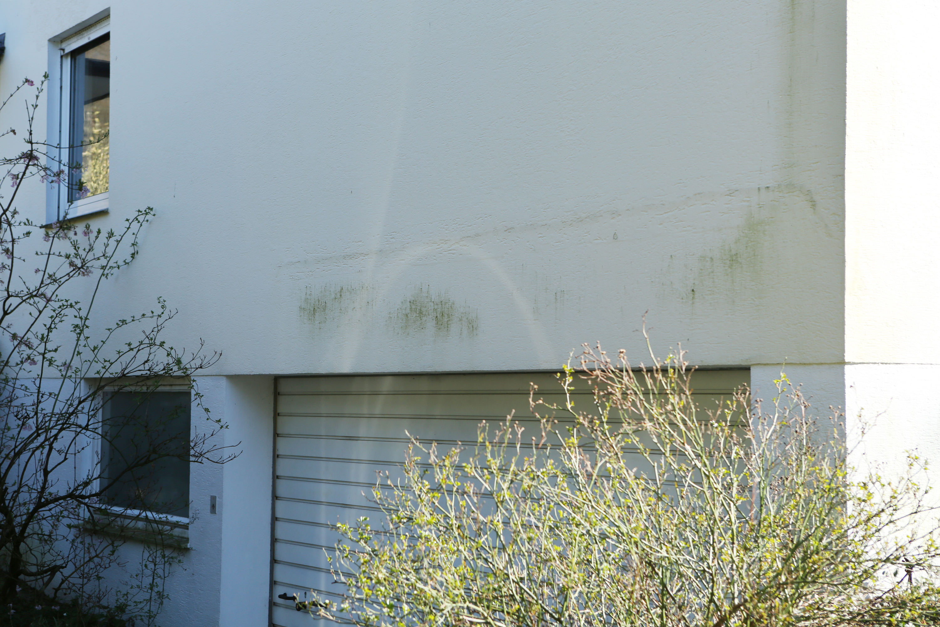 Keine Angst, Algen auf Fassaden sind kein Hinweis auf feuchte Hauswände und einem bevorstehenden Sanierungsfall. Denn Sporen von Algen und anderen Mikroorganismen fliegen permanent durch die Luft und lassen sich auf brauchbaren Oberflächen nieder.