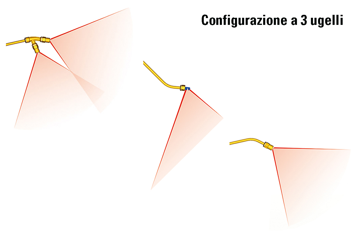 - Dotazione di fornitura esaustiva con configurazione a 3 ugelli (supporto doppio ugello con 2 ugelli Duro, ugello floodjet herbicida, ugello Duro))